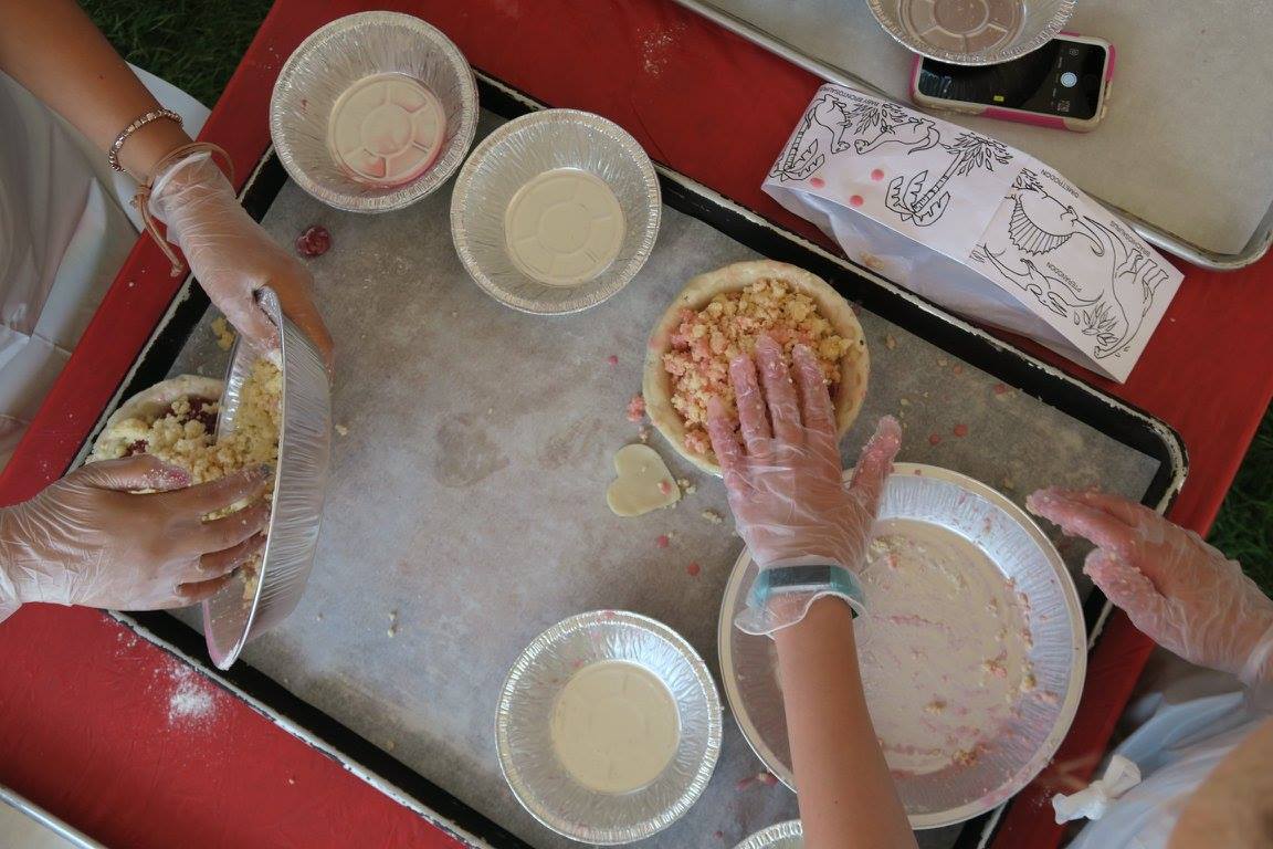 This year’s Kids Make and Bake will be held on Thursday, July 5th, 10:00 am – 4:00 pm at the Open Space. We will hold a session every 30 minutes throughout the day. Your child will have fun learning how to make a Cherry Crumb Pie. Let us do the baking and stop by later to pick up your child’s freshly baked pie. Each child will leave with not only a handmade pie to enjoy at the festival or to take home but we also hope they will leave with some happy memories.